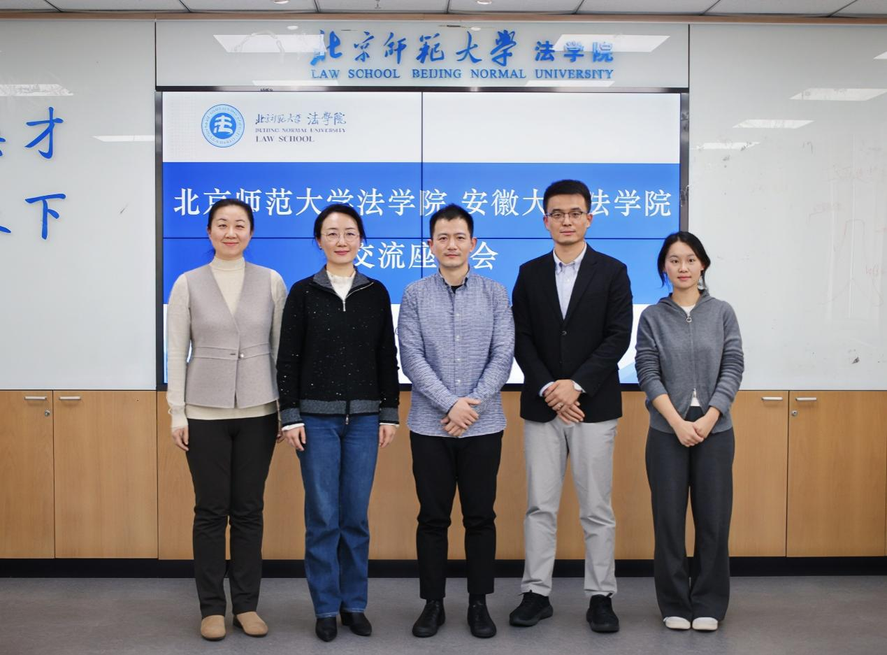 2026年3月8日,北京师范大学法学院与安徽大学法学院交流座谈会在北京师范大学海淀校园后主楼1922会议室顺利进行。安徽大学法学院副院长夏庆锋教授一行到访,我院郭雅婷副院长、唐璨副教授、杨旭老师接待来访嘉宾并出席座谈。