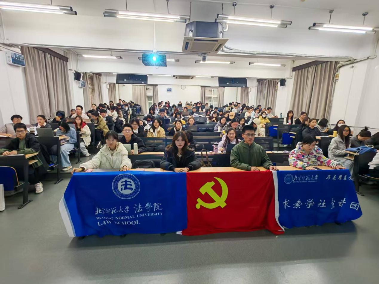 为深入学习领会党中央最新精神,引导法学院2025年秋季学期入党积极分子深刻把握国家发展脉络与规划蓝图。11月29日下午,法学院二级党校邀请北京师范大学求索学社宣讲团为法学院2025年秋季学期入党积极分子举办了以“深入学习贯彻党的二十届四中全会精神”为主题的专场宣讲会。本次宣讲在教四101教室举行,一百二十余名入党积极分子、党员同志参与本次活动。