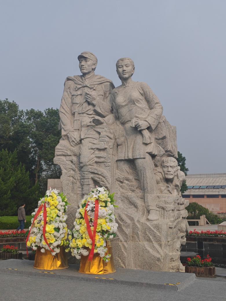 步入景区,首先映入眼帘的是“沙家浜”题词碑,碑上的题字苍劲有力,静静伫立在秋日阳光中,见证着那段可歌可泣的抗战岁月。师生党员们在碑前驻足凝视,仿佛透过碑石触摸到历史的脉搏,感受革命前辈的坚定信仰与不屈意志。沿着蜿蜒的林间小道,大家来到沙家浜革命历史纪念馆。展馆以时间为线索,分为“抗战烽火”“水乡根据地建设”“军民鱼水情”等多个篇章,通过大量的历史图片、实物文献和复原场景,再现了当年新四军与沙家浜人民并肩抗敌的壮阔画卷。