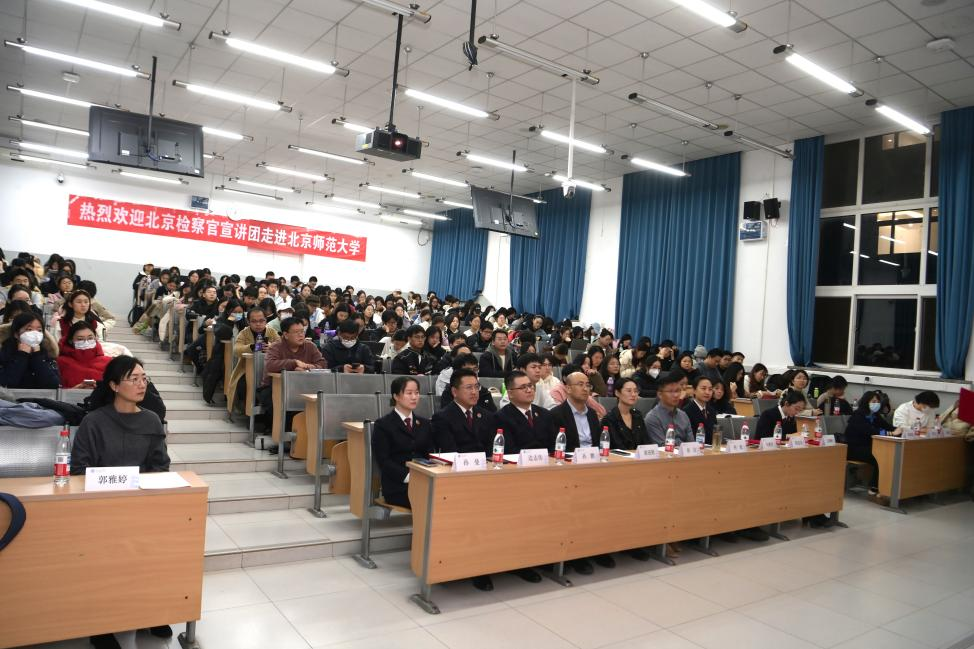 为深入学习贯彻党的二十届四中全会精神,培养担当民族复兴大任的新时代法治人才,2025年12月8日晚,北京师范大学法学院联合北京市检察院政治部共同举办“北京检察官宣讲团走进北京师范大学”法治宣讲活动。北京市人民检察院政治部宣传教育处副处长游洁,以及来自北京市检察机关的六位优秀检察官代表,北京师范大学法...
