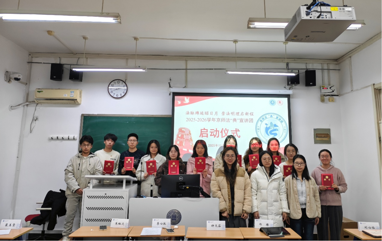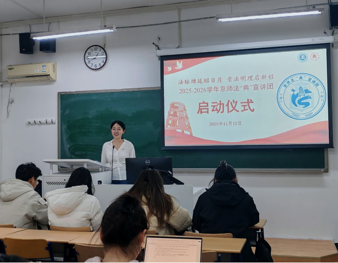 京师法“典”宣讲团在总团的指导、法学院团委的领导下,已经走过四个春秋,本学年将以崭新的风貌重新启程。为更好地发挥宣讲团效能,11月12日晚20时,2025-2026学年京师法“典”宣讲团启动仪式在教四213启动。
