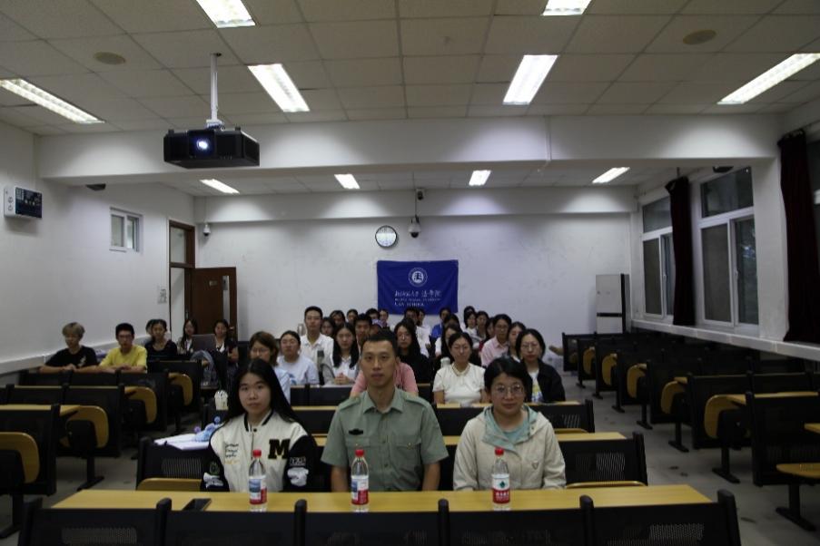 为响应国家号召,贯彻落实国家征兵政策,鼓励大学生参军入伍,激发和调动新生参与军训的积极性,2025年9月28日晚,北京师范大学法学院在电子楼104教室召开征兵宣讲会暨2025级本科生军训动员大会。法学院学生事务助理、本科生辅导员王皓月老师,文学院2025级硕士研究生、退伍大学生士兵刘旭泽,2022级本科生岳茹涵和2025级本科班全体同学参加了本次活动。征兵宣讲会由王皓月主持。