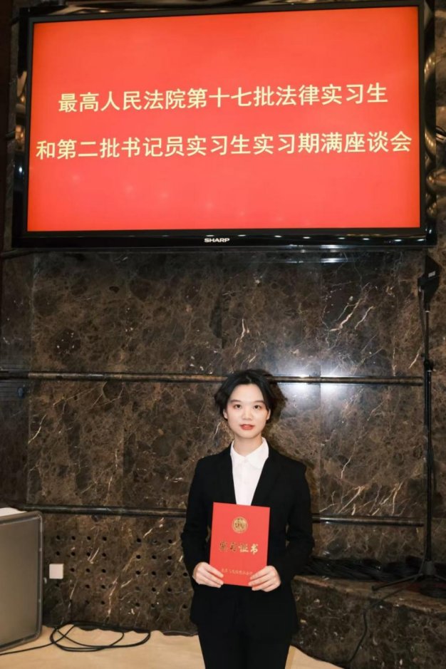 在最高人民法院为期四个月的实习经历于我而言是一堂将将书上的“法”与实践的“法”有机结合起来的宝贵课程。实习期间,我有幸参与了对某类犯罪的指导意见研究工作当中,进行了大量的案例检索、分类梳理和资料整理,在法官前辈们的悉心点拨下,逐渐掌握研究报告撰写、案例分析的技巧,学习用司法实务的思维拆解问题、梳理脉络。在协助合议庭工作中,参与案件的办理和讨论,认真聆听学习法官前辈们对这些对复杂案件事实认定、疑难法律适用的剖析思路,学习他们严谨审慎的裁判逻辑与办案经验,在查阅大量的文献资料、梳理案件细节的过程中,也逐渐敢于结合所学提出个人见解,与法官前辈们一起碰撞出思维的火花。在协助庭办处理日常事务时,从文件精准分发、案卷细致核对,到各类司法辅助工作,看似琐碎的点滴,都在锤炼我的耐心与细心,让我深刻体会到司法工作“失之毫厘,谬以千里”的严谨性。这段实习不仅让我专业能力有所提升,更让我收获了温暖情谊。实习期间,我有幸参与最高人民法院组织的第六届“正义杯”篮球赛,与刑庭联队的法官前辈、实习生伙伴并肩作战,携手挺进联赛八强。训练场上的并肩拼搏、工作之余的暖心交流、闲暇时刻的相约相聚,让我感受到法官前辈们的亲和与温暖,结识了良师益友,积攒下毕生难忘的真挚情谊。最后,衷心感谢最高人民法院和北京师范大学法学院提供的这次宝贵的实习机会,这段经历是我在法律求学道路上的一段弥足珍贵的记忆!未来我将带着这份收获与感悟,坚守法治初心,深耕专业领域,以严谨务实的态度奔赴法律征程,继续努力成为有信仰、有担当、有温度的法律人!