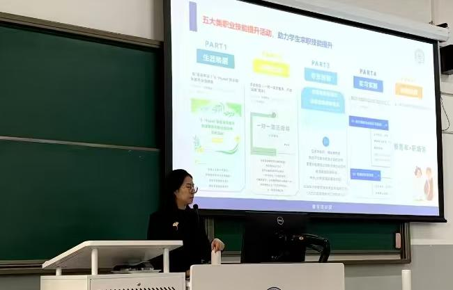 党委学生工作部职业发展与就业指导中心的郭学茹老师从就业形势、部分城市人才引进政策、常见的就业问题、就业派遣系统填报操作指南与注意事项、职业发展与就业指导中心服务事宜五个方面向同学们讲解就业相关注意事项。