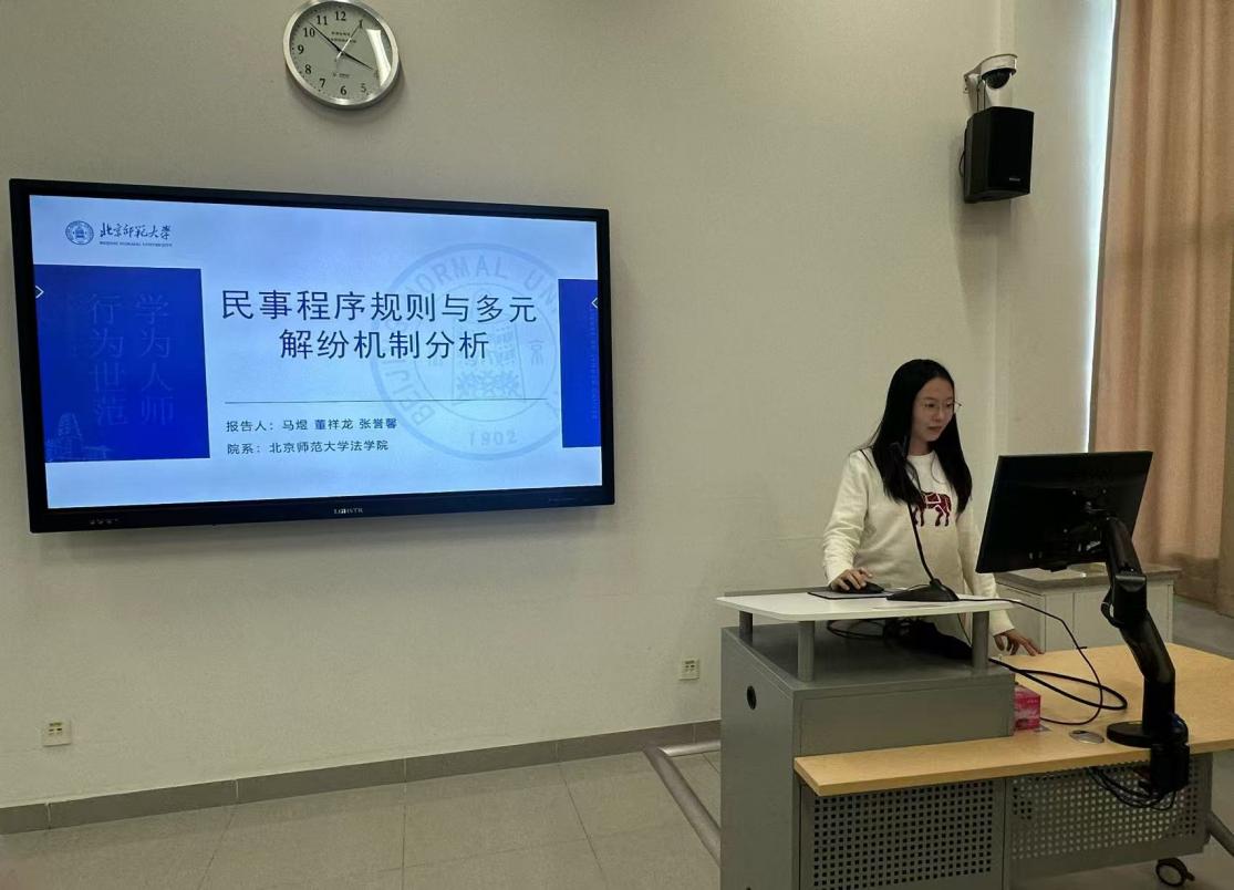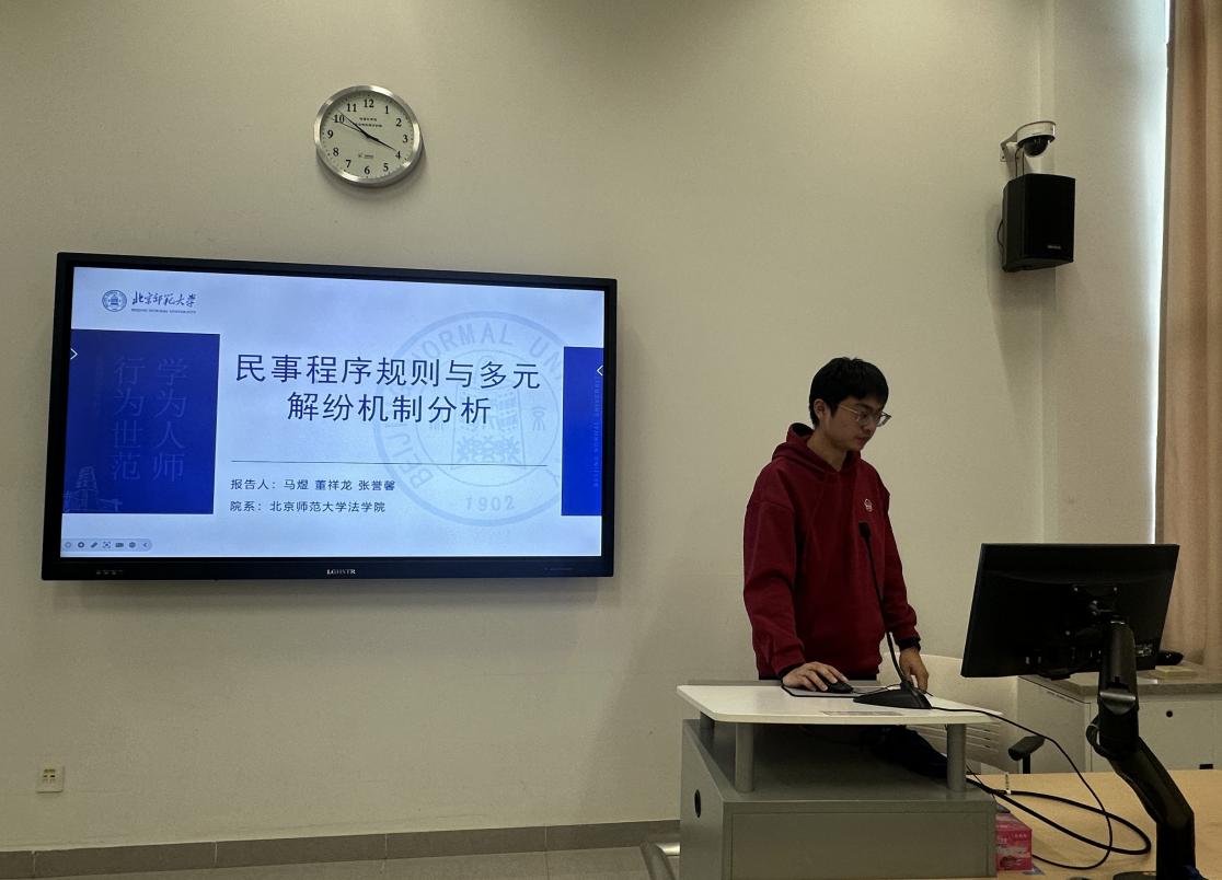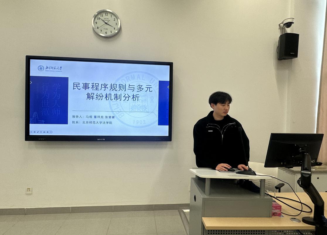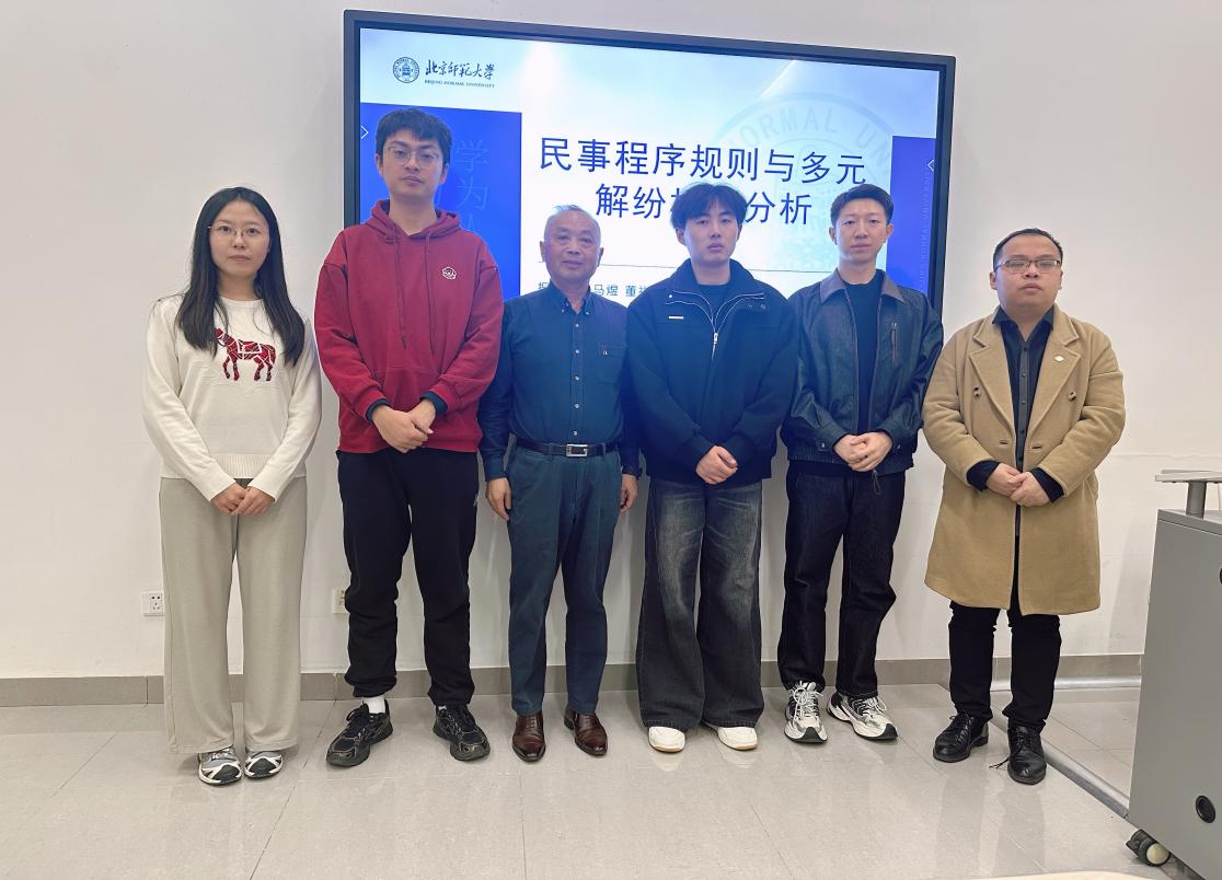 2026年3月12日下午,北京师范大学法学院在昌平校园教二101教室举办了一场博士研究生学术报告会,主题聚焦于“民事程序规则与多元解纷机制分析”。本次报告会由法学院2024级博士生马煜、张誉馨和2025级博士生董祥龙担任主讲人。报告特别邀请冷罗生教授作为评议人,并邀请2025级博士生冯钰清、唐翰逸雄担任与谈人,共同参与学术探讨。
