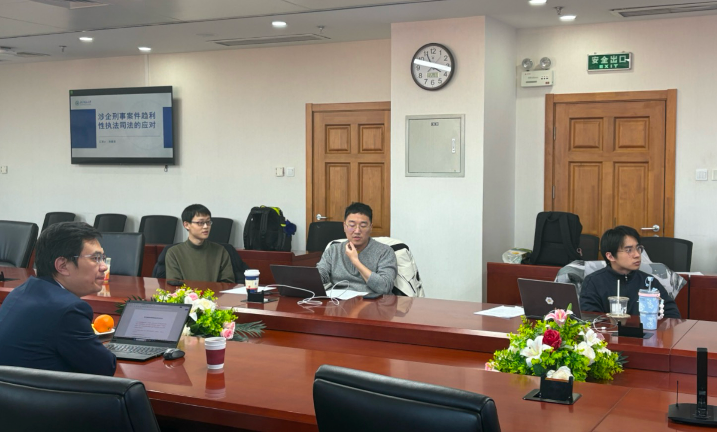 2025年12月29日下午,北京师范大学法学院博士研究生学术报告“企业利益与民事财产的刑法保护”在海淀校园后主楼1822会议室举行。本次学术报告由北京师范大学法学院2024级博士研究生王唯鉴、李正源、刘嘉梁进行汇报,邀请北京师范大学法学院张磊教授作为评议人。报告人的汇报基于已完成的学术论文展开,每位报告人汇报结束后进行评议和交流环节。每位报告人都进行了全面、充分的表达,评议人作出细致的交流和点评。