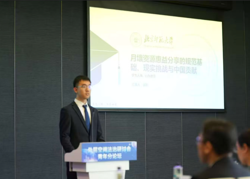 我院研究生徐尉应邀参会,其论文《月壤资源惠益分享的规范基础、现实挑战与中国贡献》被收录至学会论文集并在外层空间法治研讨会现场宣讲。该论文聚焦月壤资源惠益分享这一外空治理核心议题,以规范基础—现实挑战—中国贡献为逻辑主线展开研究,旨在为构建公正合理的月球资源治理秩序提供学理支撑与实践路径。在规范基础层面,论文梳理了《外空条约》“全人类共同利益”等原则的框架性作用、《月球协定》“人类共同继承财产”原则下的惠益分享框架,以及国际“软法”文件对规则的补充完善,明确了现有规范的核心内涵与制度价值。在现实挑战层面,论文指出当前存在《外空条约》表述模糊、《月球协定》缔约国失衡与实施标准缺失、私营主体开发合法性争议、单边主义与阵营化竞争侵蚀多边主义等多重困境,制约了惠益分享原则的落地。在中国贡献层面,论文提出中国应依托技术优势与实践经验,通过强化多边合作、明晰核心概念与梯度标准、参与国际规则博弈等路径,推动惠益分享规则的完善与落实,平衡国家利益与全球福祉。