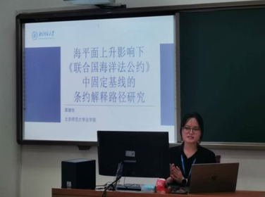 在当天上午举行的“分论坛第三组:国际海洋法与环境法”研讨中,覃璐怡同学作了题为《海平面上升影响下<联合国海洋法公约>中固定基线的条约解释路径研究》的主题发言。该研究基于海平面上升导致沿海国基线及海洋区域变动的现实背景,在《联合国海洋法公约》框架下深入探讨了“固定基线”的合法性路径。发言中,覃璐怡详细阐述了“基于条约文本的演进解释”与“偏离条约文本的嗣后实践”两种解释路径的适用可能性及其面临的法律障碍,指出演进解释难以将“固定基线”纳入“基线”的文义范围,而嗣后实践则存在模糊条约解释与修改界限的风险。最后,她结合中国立场提出,固定基线并不能从根本上解决小岛屿发展中国家的困境,应秉持“海洋命运共同体”理念,通过国际合作应对海平面上升带来的风险挑战。武汉大学中国边界与海洋研究院蒋小翼教授和黄伟副教授作为评议嘉宾,对覃璐怡同学的论文及发言进行了细致点评,并就相关法律解释问题展开了深入交流,提出了宝贵的修改意见。
