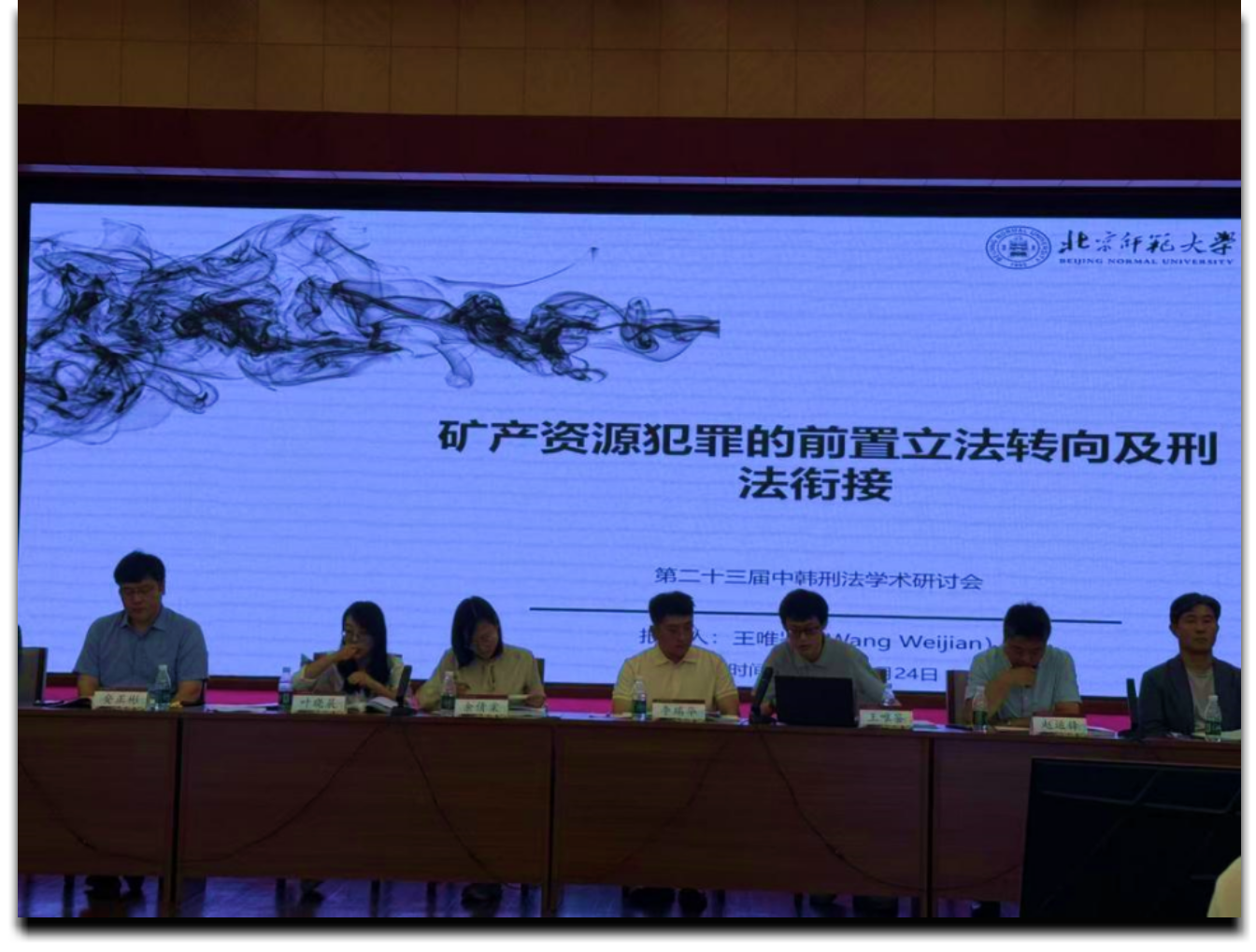 我院博士生王唯鉴应邀参加本次会议,并在第三单元进行报告,其报告主题为“矿产资源犯罪的前置立法转向及刑事法衔接”。第三单元的议题为“生态环境犯罪惩治中的多元机制”,本单元的研讨由韩国刑事法学会副会长、京畿大学黃泰正教授主持,上海市法学会刑法学研究会副会长、华东政法大学刑事法学院杨兴培教授,韩国比较刑事法学会硏究理事、韩国海洋大学姜于乂教授,华东政法大学中国环境犯罪治理研究院秘书长徐光华进行评议。