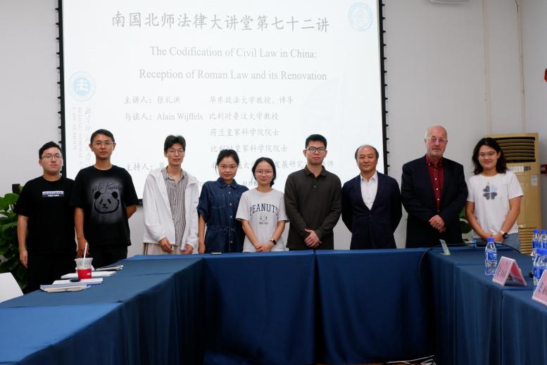 2025年10月31日,南国北师法律大讲堂第七十二讲“中国民法典编纂:罗马法的继受与创新”在北京师范大学珠海校区励教楼A103会议室成功举行。本次讲座由华东政法大学教授、博士生导师张礼洪老师主讲,比利时鲁汶大学教授、荷兰皇家科学院院士、比利时皇家科学院院士Alain Wijffels老师与谈,北京师范大学法治发展研究中心讲师莫杨燊老师主持。