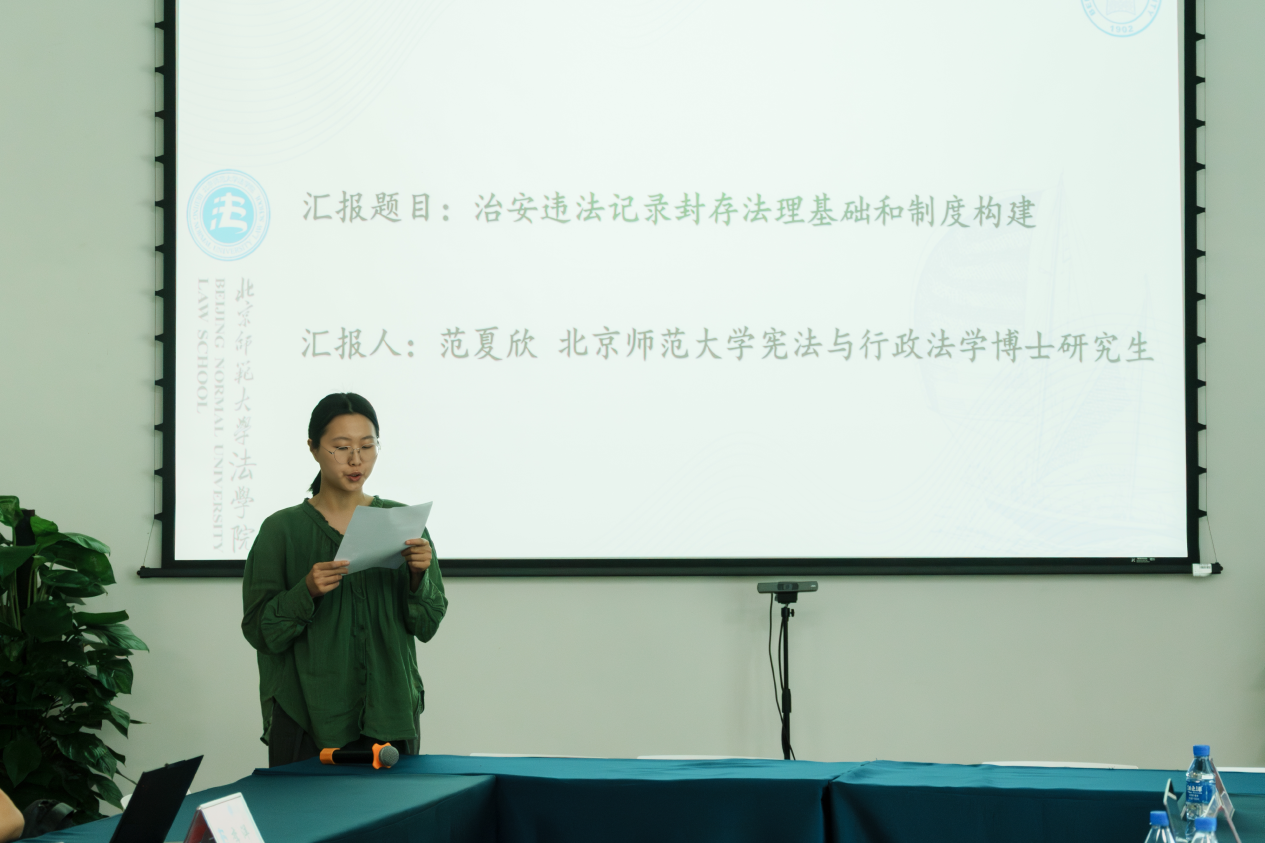 范夏欣的报告主题为《治安违法记录封存制度的法理基础与制度构建》,她认为,治安违法记录封存制度是治安违法治理领域的重要制度创新,在信息技术深度嵌入治安违法治理、违法附随后果日益严重的背景下具有重大制度意义。2025年修订的《治安管理处罚法》第136条首次确立该制度,但该条款仅作出概括性规定,法理基础尚待厘清、配套规则严重缺失,引发社会广泛争议。治安违法记录封存制度的本质,不仅是法律技术问题,更关乎政策判断与选择,不能简单移植犯罪记录封存的既有框架。治安违法记录封存制度的构建,应当统筹人权保障与社会安全,把握普遍趋势与具体国情,坚持科学立法与民主立法。在行政合法性原则的指导下,细化制度实施细则,明确分类分级封存标准,健全审批流程和查询权限,建立监督与救济机制,推进相关法律法规衔接,避免制度在执行层面走样变形。