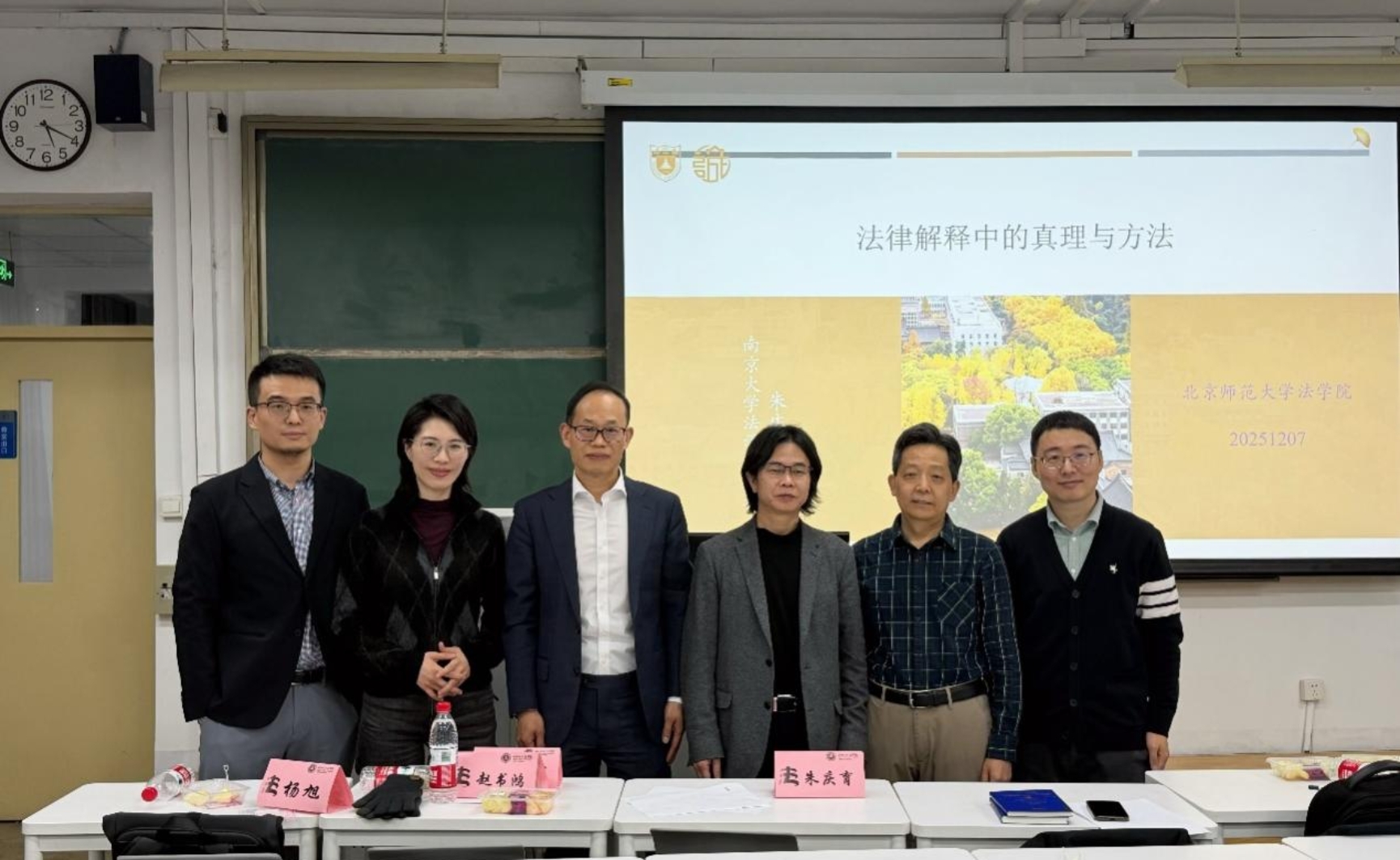 12月7日,京师法学大讲堂第56期“法律解释中的真理与方法”在北京师范大学海淀校园教二楼208教室顺利举办。本次讲座由南京大学法学院教授朱庆育主讲,北京师范大学法学院党委书记郑延谱教授致辞,中国政法大学民商经济法学院教授戴孟勇、北京师范大学法学院副教授赵书鸿、中国政法大学民商经济法学院讲师张兰兰、北京师范大学法学院副教授孙新宽与谈。讲座由北京师范大学法学院杨旭老师主持,共有近两百位校内外同学积极参与,场面热烈。