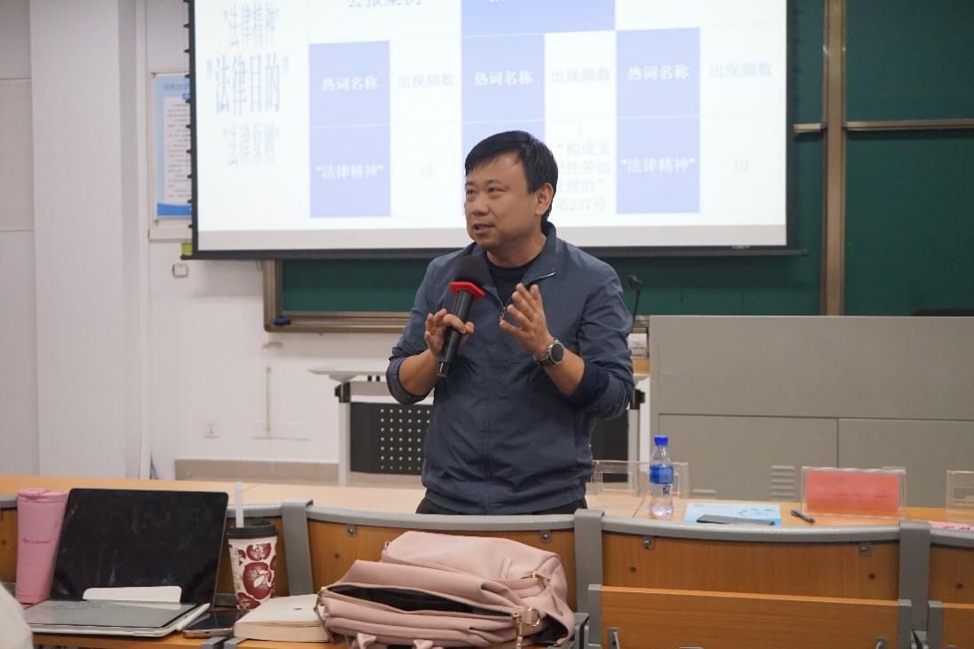 周伟教授首先介绍了法律硕士专业法考和学术论文发表情况,充分肯定了学生的专业素养和学术能力,帮助同学们树立了学习信心。之后,周教授以民国最高法院为切入点,提出了实务中法律适用的问题:即在没有法条或者法条不能有效使用的情况下,如何进行审判,进而引出了本次讲座的核心议题:法律精神。