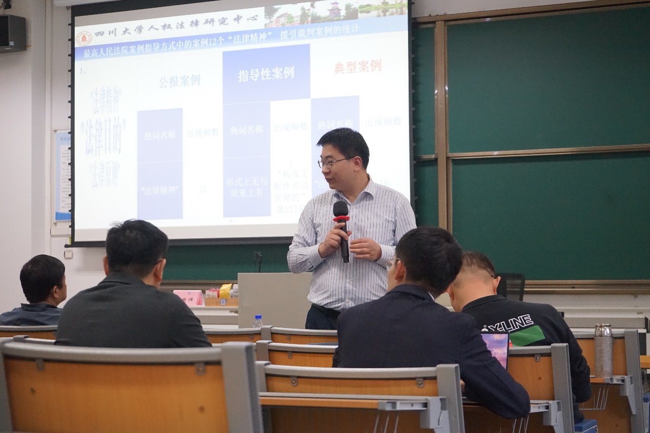 四川省委党校蒋盼老师与四川大学法学院梅帅老师参与讲座。蒋老师认为,法律精神同法律原则和目的界限比较模糊,原则在总则中有更多体现,但是法律精神没有明确写明,那么对于法律精神要作常识化理解。梅老师认为,通过在行政裁判实践中梳理最高人民法院发布的典型案例,可以看出这些案例与人们的生活息息相关。针对他所研究的行政法领域,他介绍了行政法原则在数字化背景下的应用,并呼吁同学们关注法律规范与科技发展之间的互动。