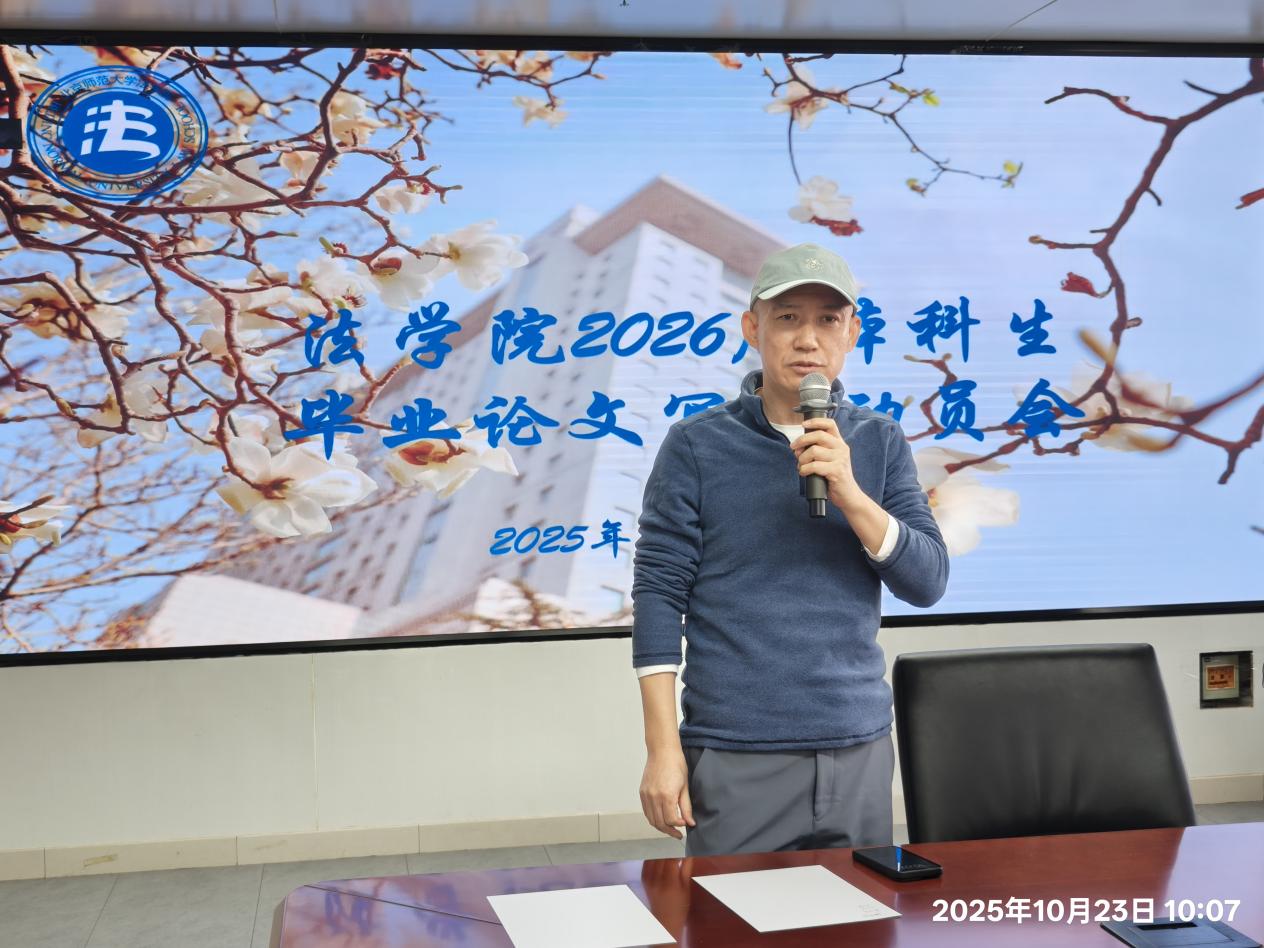 10月23日上午,法学院以线上线下相结合的方式召开2026届本科生毕业论文写作动员会。会议由教学副院长贺丹教授主持,邢钢教授、本科生教务老师钟莉莉、法学院2026届全体本科生参加会议。