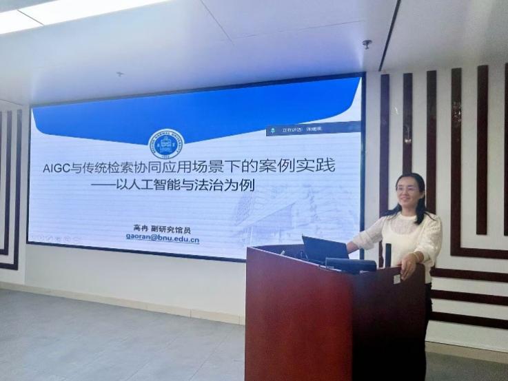 为提升法学院师生学术资源利用能力,法学院与校图书馆联合举办北京师范大学图书馆学术素养训练营法学院专场活动。继首场讲座后,2025年10月14日晚,第二场讲座《AIGC与传统检索协同应用场景下的案例实践》在后主楼1822会议室成功举办。本次讲座由校图书馆副研究馆员高冉老师主讲,法学院副院长贺丹主持,法学院师生以“线下+线上”形式参与,共同探索AI时代法学学术检索的新路径。