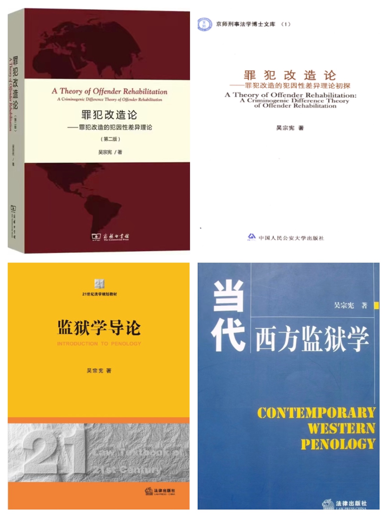 吴宗宪教授的主要研究领域包括犯罪学、监狱学、社区矫正和犯罪心理学,他是我国重要的资深监狱学研究者之一。从1984年在中国政法大学研究生院读二年级时修读“劳改法”(即后来的监狱学)课程、聆听原抚顺战犯管理所所长金源先生和原国民党战犯尚传道先生的讲座、参加大学生演讲团到山东的监狱和劳教所给犯人和劳教人员演讲开始,正式与监狱学结缘,40多年来,在监狱学领域深耕细作,进行了多方面的大量的工作。在研究方面,出版了种类较多的著作。其中,既有专门论述国外监狱学内容的《当代西方监狱学》(法律出版社2025年),也有全面阐述监狱学内容的《监狱学导论》(法律出版社2012年),以及侧重应用性研究的《中国现代化文明监狱研究》(主编,警官教育出版社1996年)和《我国监狱法修订研究》(主编,中国社会出版社2021年);既有系统论述国外罪犯心理矫治的《国外罪犯心理矫治》(中国轻工业出版社2004年),也有论述我国罪犯心理矫治的《中国服刑人员心理矫治》(主编,法律出版社2004年)和《中国服刑人员心理矫治技术》(主编,北京师范大学出版社2010年);还有专门论述罪犯改造理论的专著《罪犯改造论——罪犯改造的犯因性差异理论初探》(中国人民公安大学出版社2007年)和《罪犯改造论——罪犯改造的犯因性差异理论》(第二版,商务印书馆2019年)等。这些研究成果较为深入地探讨了监狱领域的相关内容,给学术研究和实务工作提供了很多参考信息和一些思考建议。