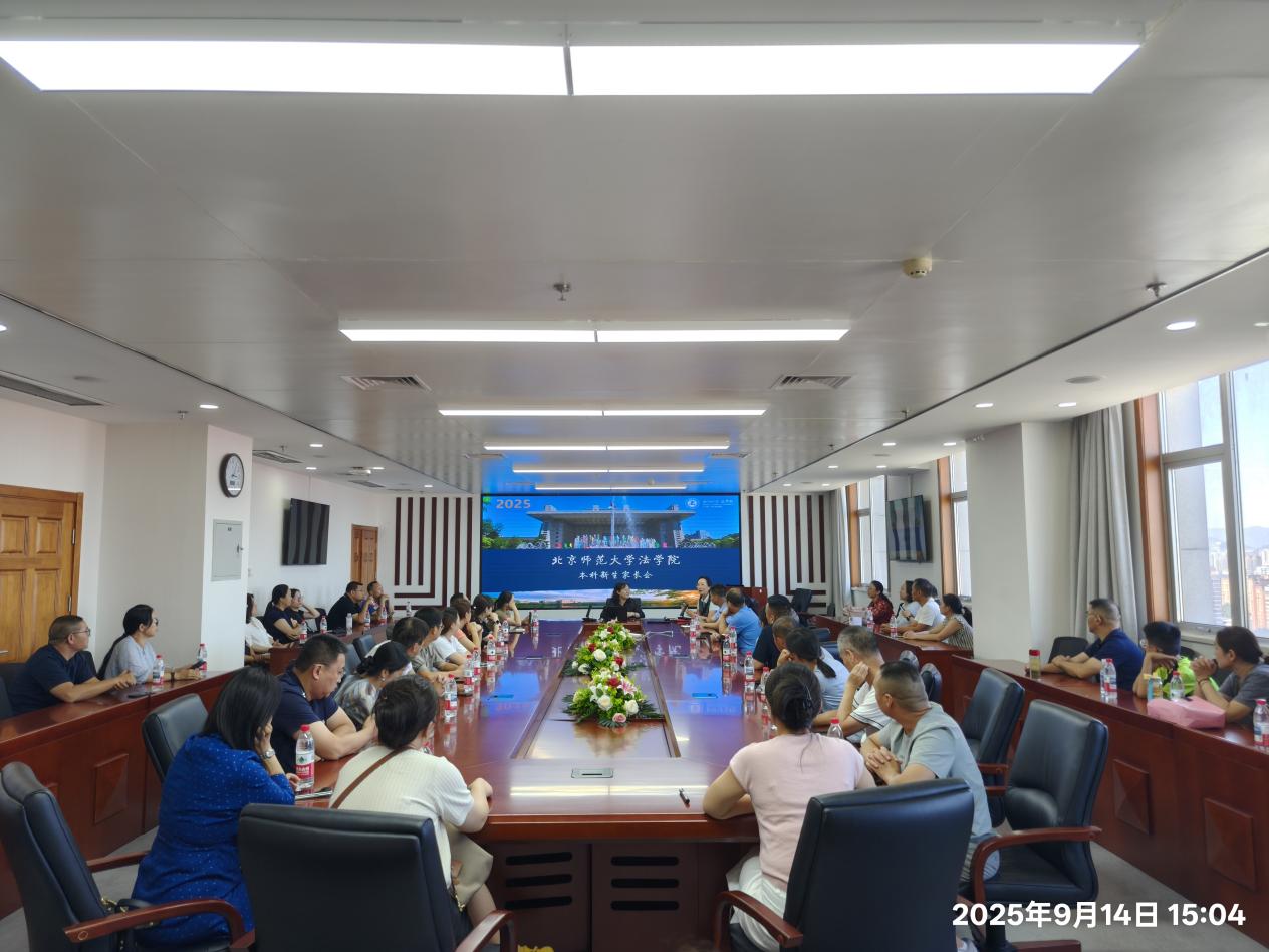 为帮助新生家长了解北京师范大学法学院,增强家长和学院间的沟通交流,构建良好的家校合作育人机制,法学院于9月14日下午在后主楼1822会议室召开了2025级本科新生家长见面会。北京师范大学法学院副院长贺丹、党委副书记郭雅婷、新生班主任杨林、本科教务秘书钟莉莉及近50名新生家长齐聚一堂,共同探讨学子们的成长和发展大计。